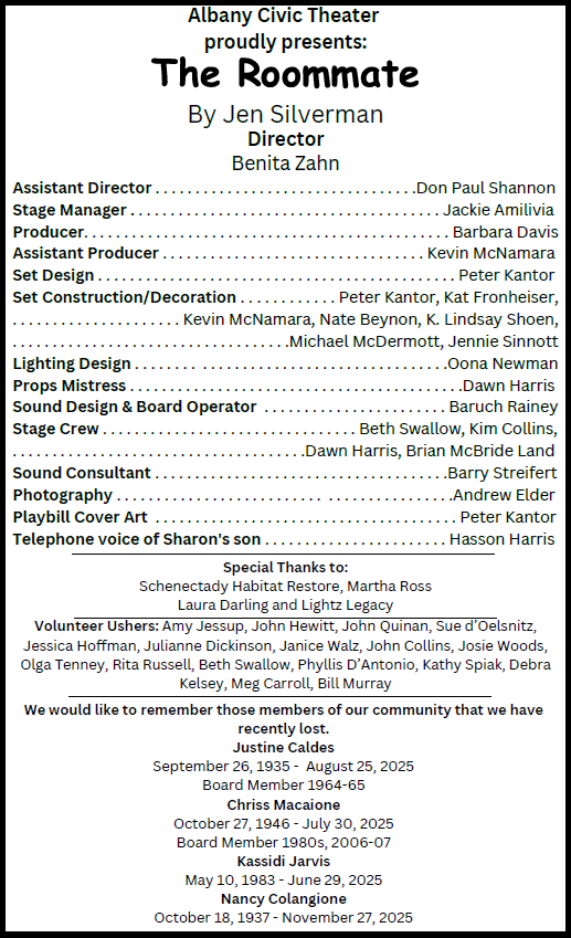 Please scroll to view the program forThe RoommateOr click here to download or open a PDF version of the program